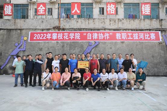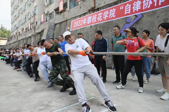 2022年9月30日15时,学校排球场横幅高挂,赛程张榜,各路参赛队伍齐聚于此,一时间人声鼎沸、热火朝天。由校工会主办、体育部承办的攀枝花学院“自律协作”教职工拔河比赛如期举行。来自全校各二级分工会(支部)组成的20支代表逾400名选手即将展开紧张激烈的拔河比拼。
